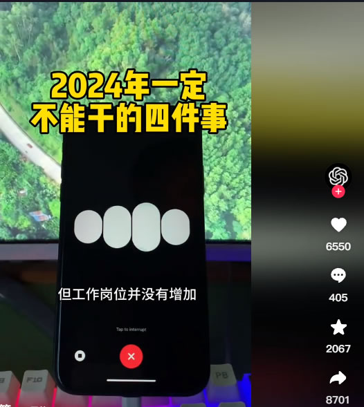 自从ChatGPT推出了手机版的语音功能之后,很多人利用ChatGPT回答一些问题,并发到抖音上获取流量。